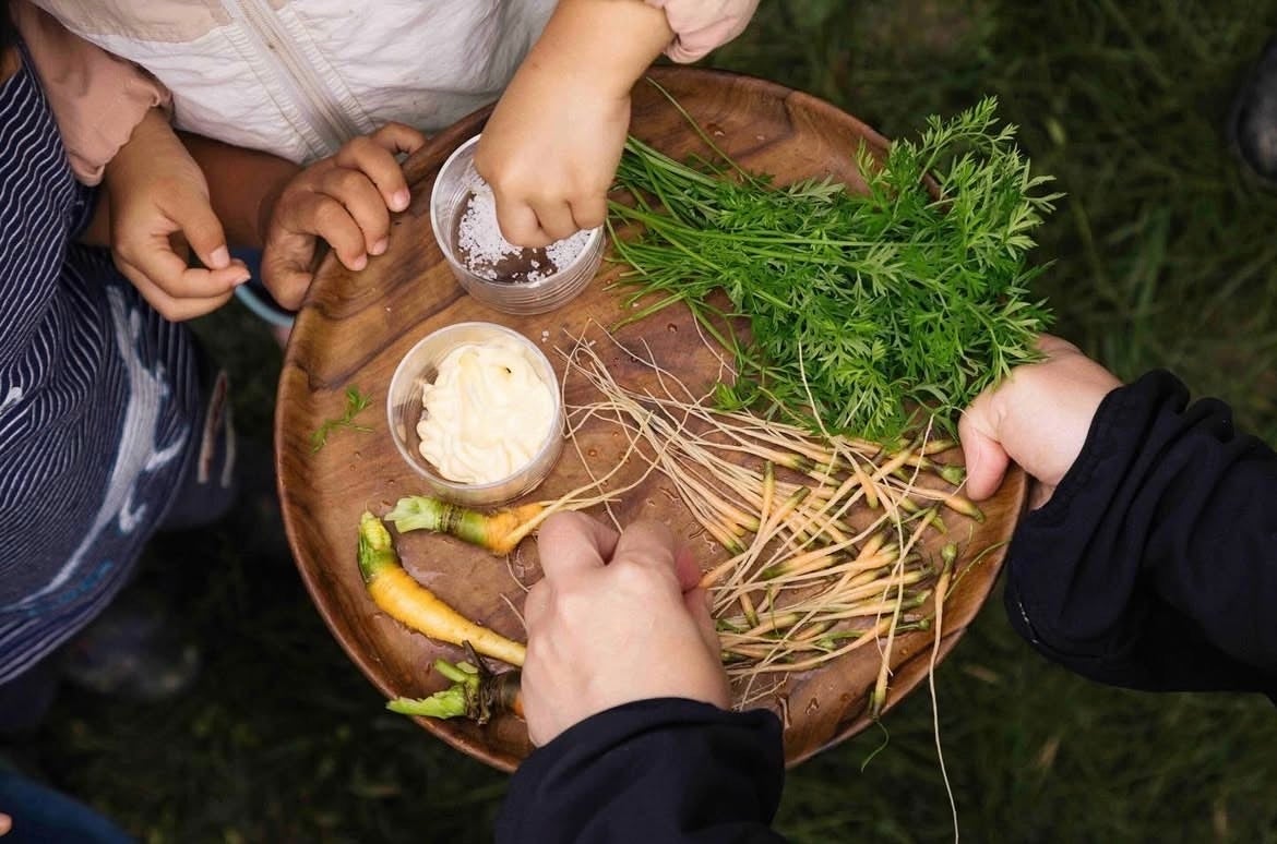 畑で土に触れ、種を蒔いて収穫する一連の体験を通じて、