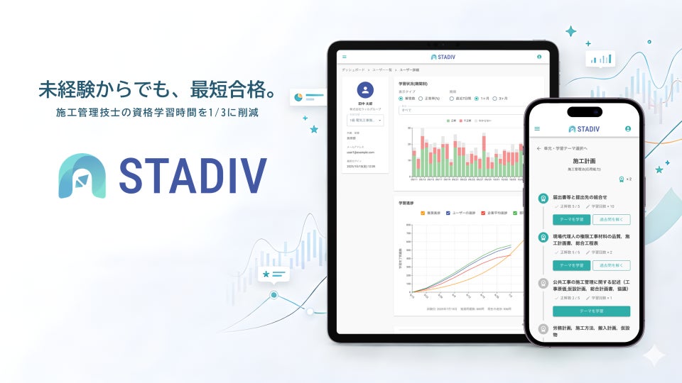 AIで産業を再設計する株式会社VIG(本社:東京都渋谷区、以下VIG)は、株式会社ウィルグループ(本社:東京都中野区、代表取締役社長 角 裕一、東証プライム上場)が2026年4月上旬より提供開始する1級施工管理技士 1次検定対策アプリ「STADIV(スタディブ)」の事業立上げ支援を一貫して行いました。市場調査から事業コンセプト設計、サービス設計~開発まで伴走し、ウィルグループによる正式リリースに至りました。