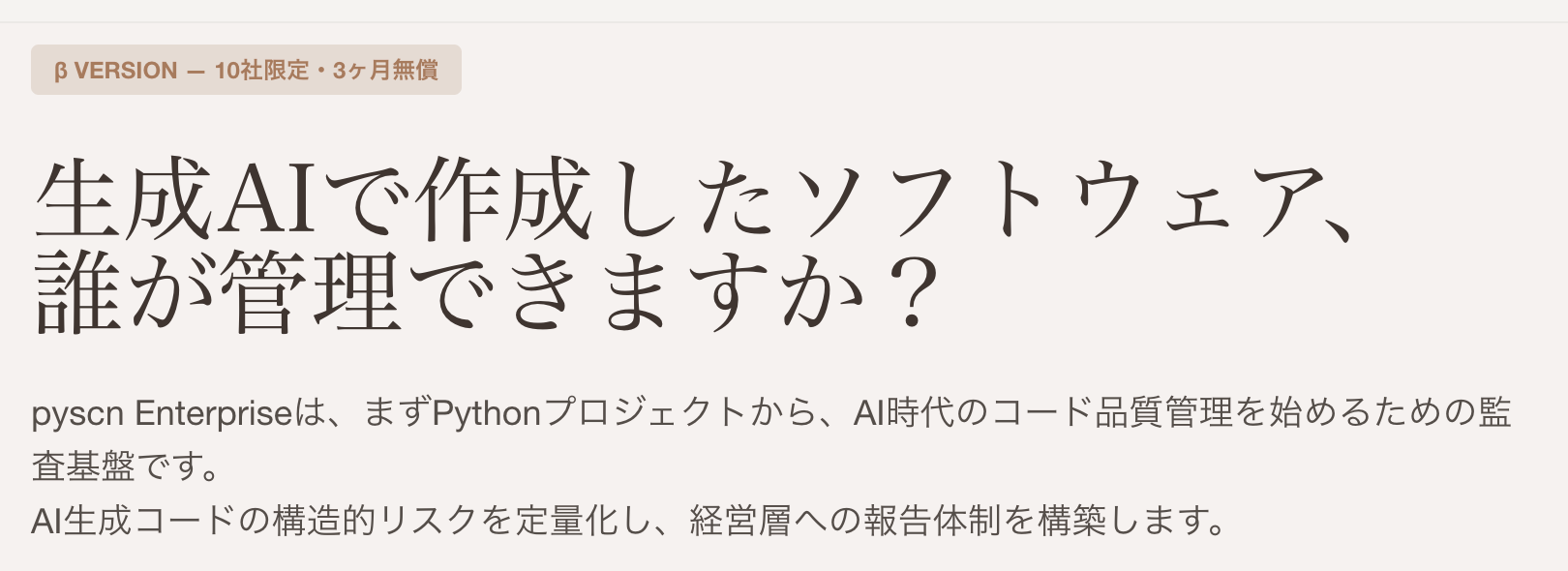生成AIで加速する内製化、コードの「品質ブラックボックス」を防ぐ。コード監査基盤「pyscn Enterprise」β版、10社限定で無償提供
