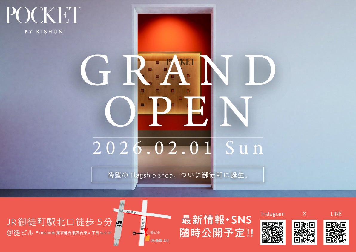 貴瞬唯一のtoCブランド「POCKET BY KISHUN」の実店舗 2026年2月1日(日)御徒町にグランドオープン!