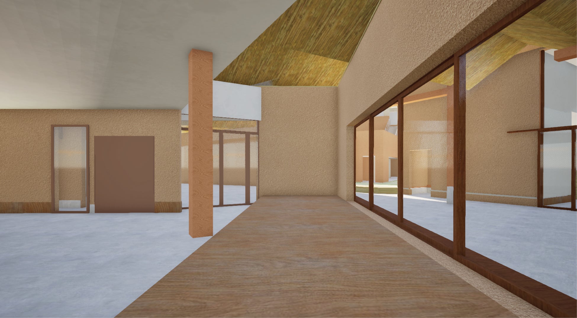 図面では掴みにくいCLT折版の迫力、光の入り方など空間性を把握できる