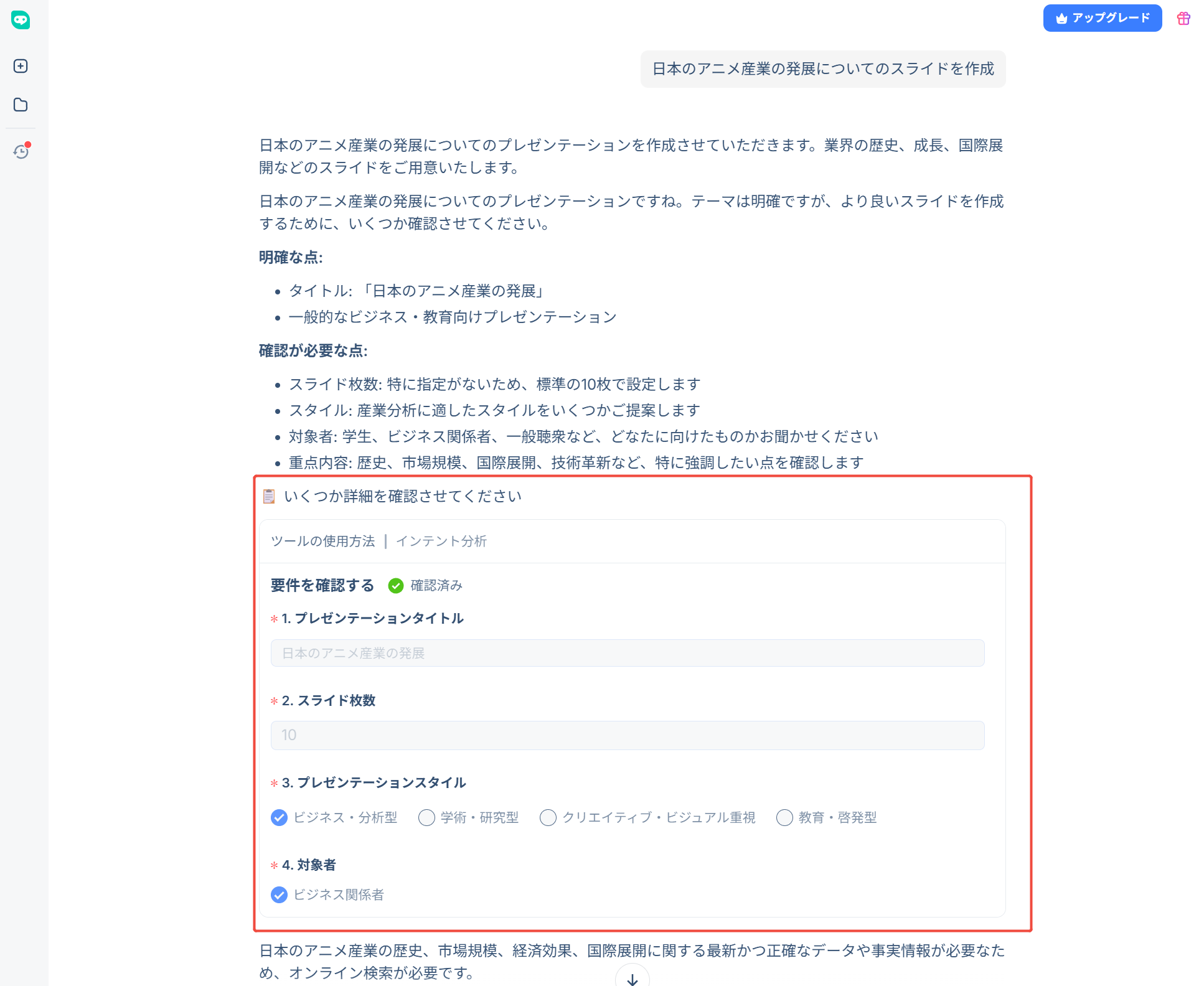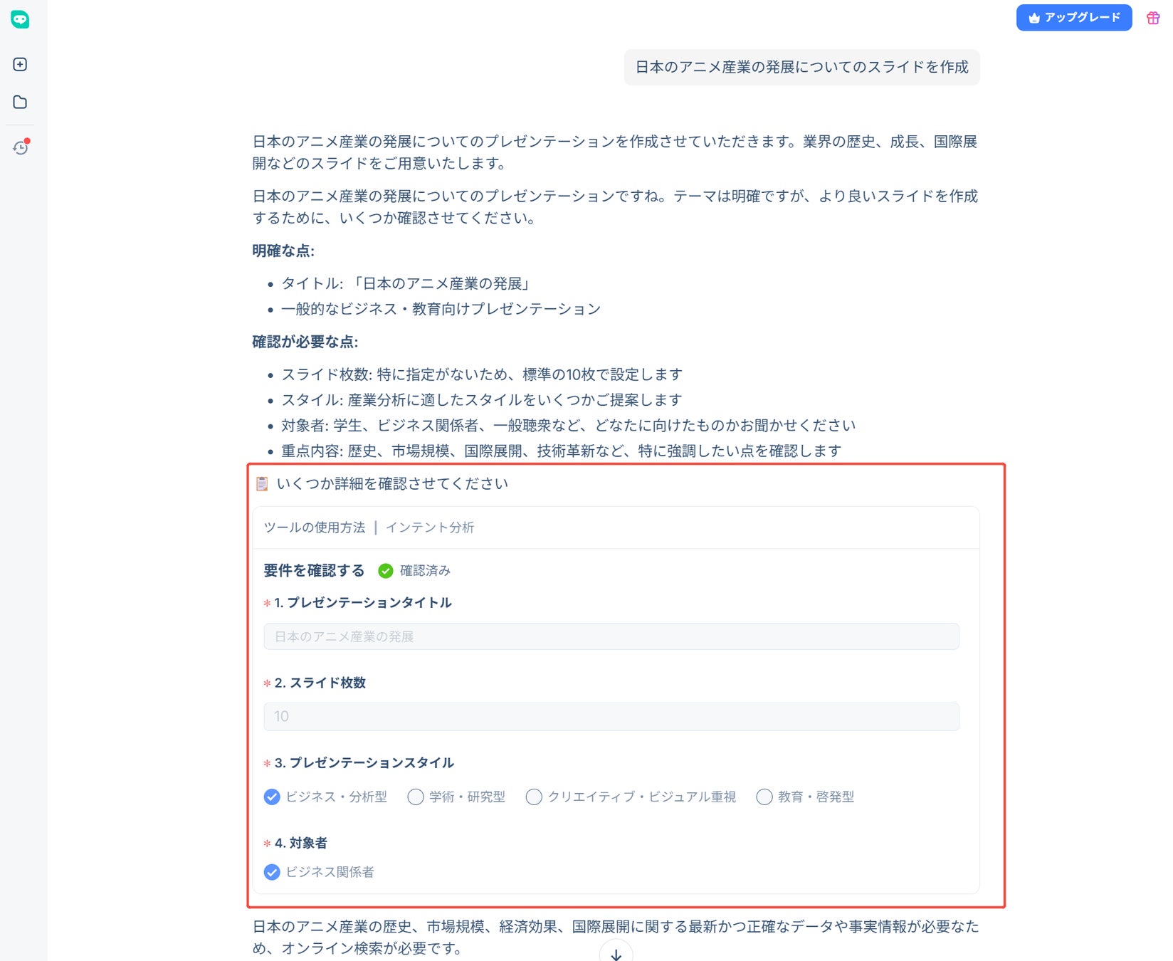 HIX AIスライド作成AIの詳細情報:https://hix.ai/ja/ai-slides