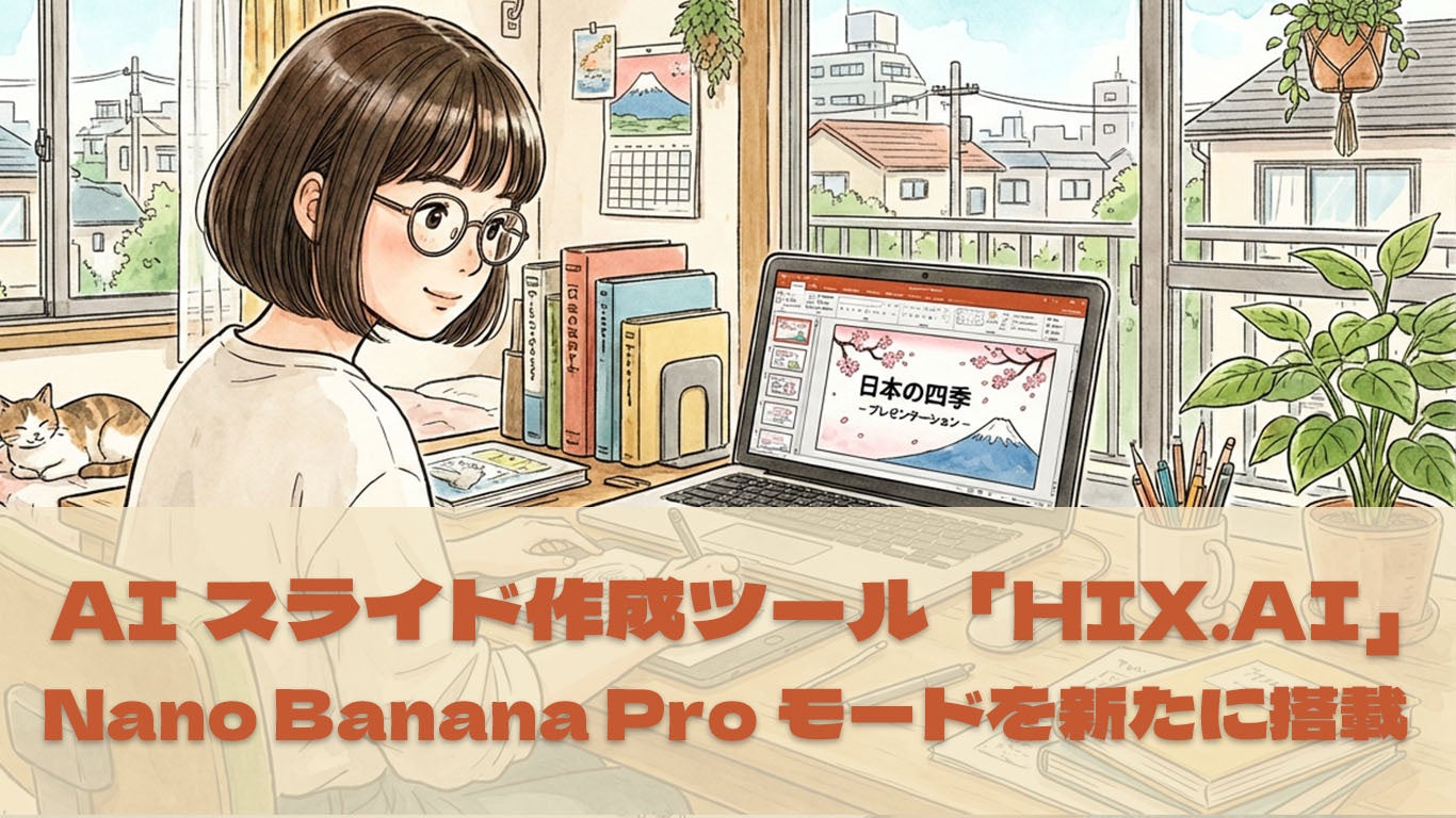 オールインワンAIスライド作成ツール「HIX.AI」、Nano Banana Proモード搭載&生成後編集機能を新たに追加!