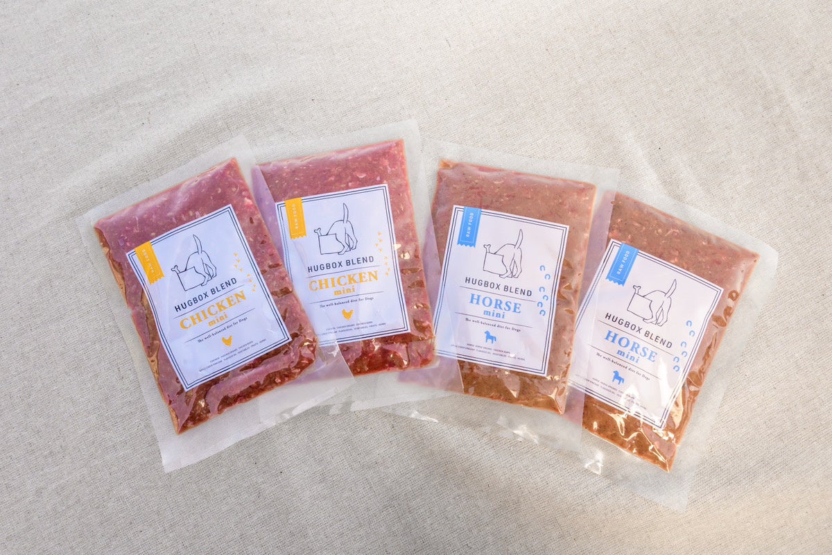 <ハグボックス100g×2(チキン・ホース)で500円ワンコイン販売>