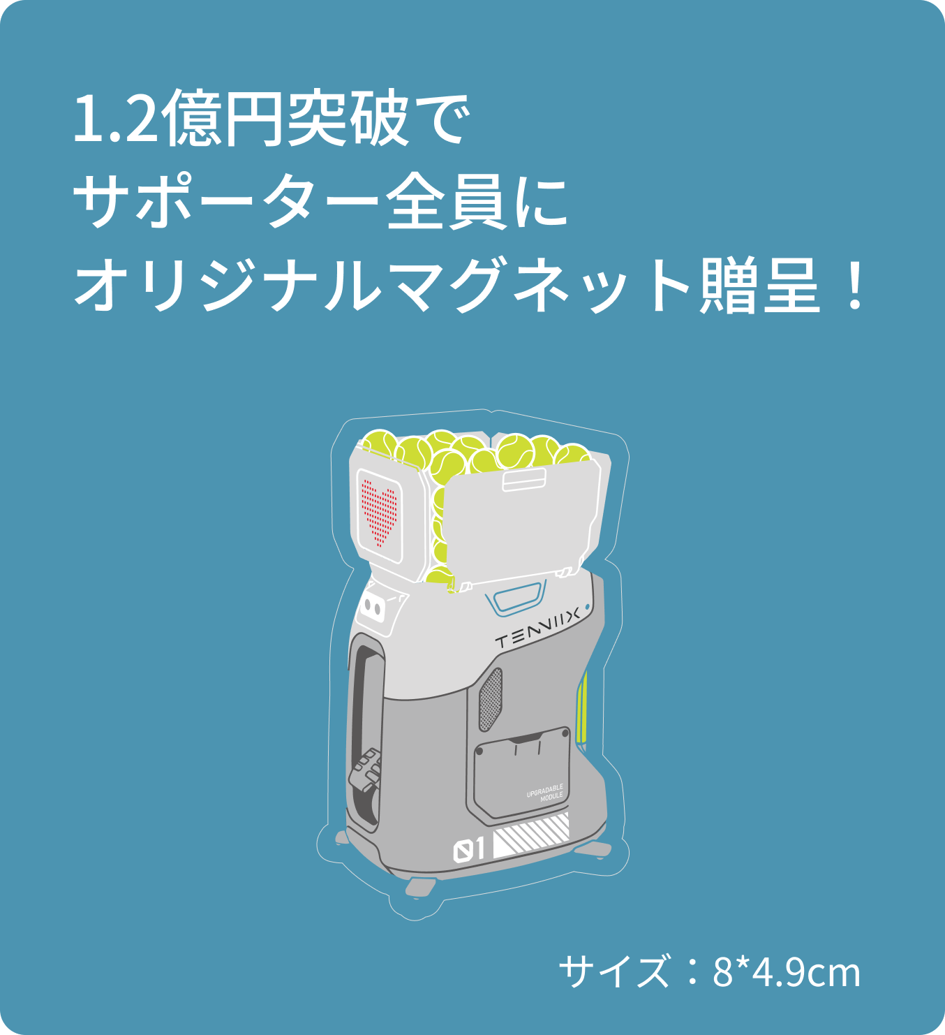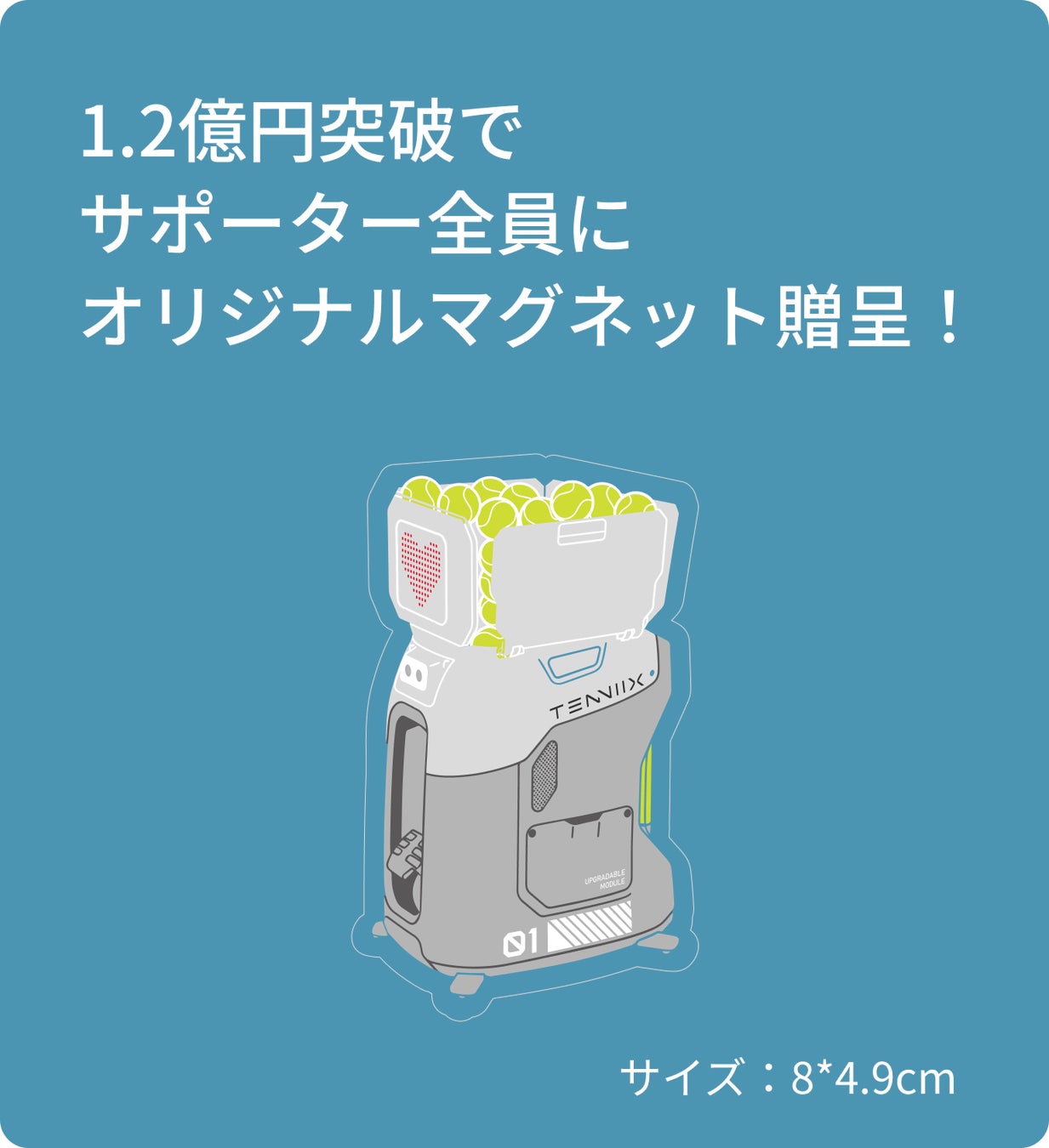 本プロジェクトの応援購入総額が1.2億円を突破した場合、サポーターの皆様全員に「Tenniix公式オリジナルマグネット」1枚をプレゼントいたします。