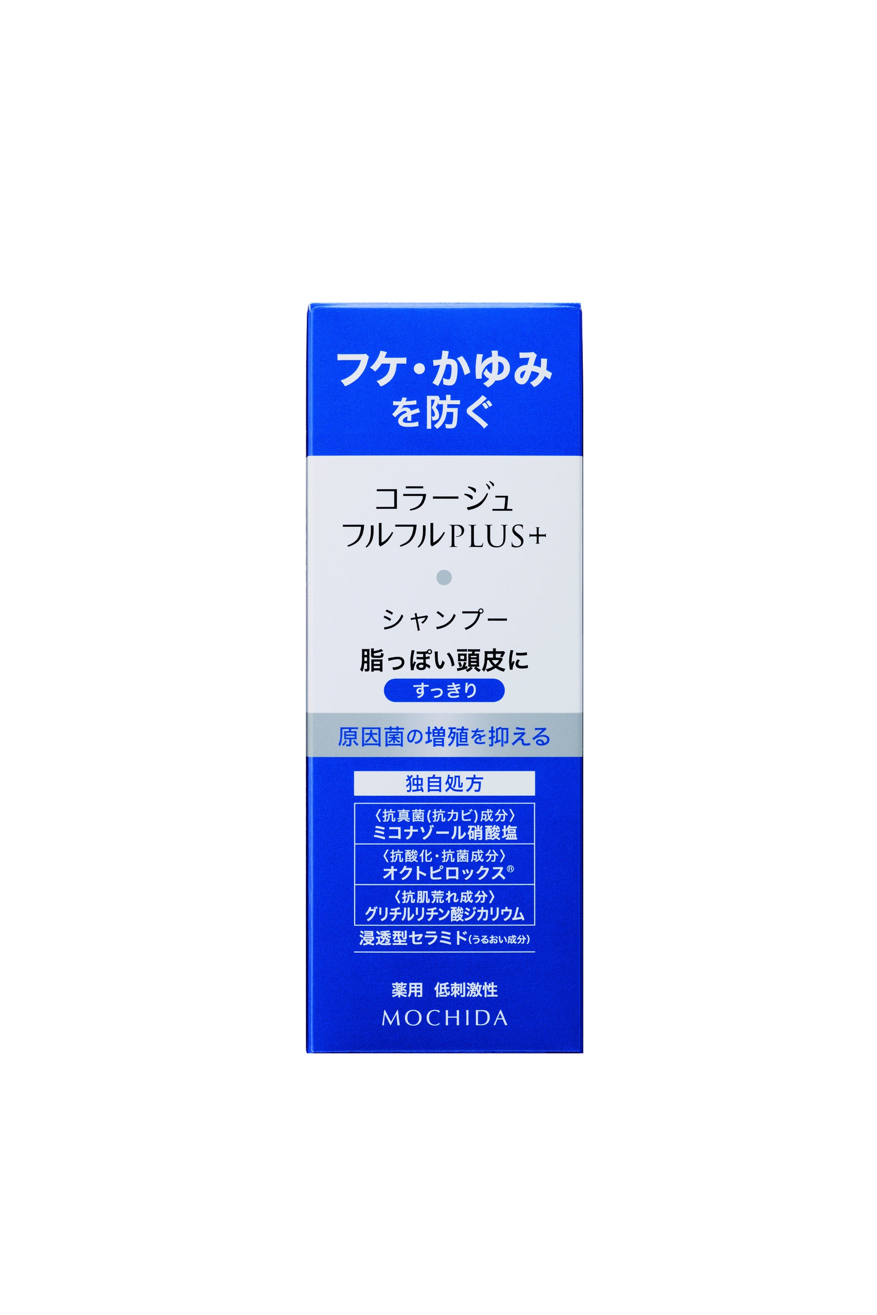 抗真菌(抗カビ)成分「ミコナゾール硝酸塩」と抗酸化・抗菌成分「オクトピロックス®」配合シャンプーで、フケ原因菌(頭皮のカビ)の増殖を抑制します。