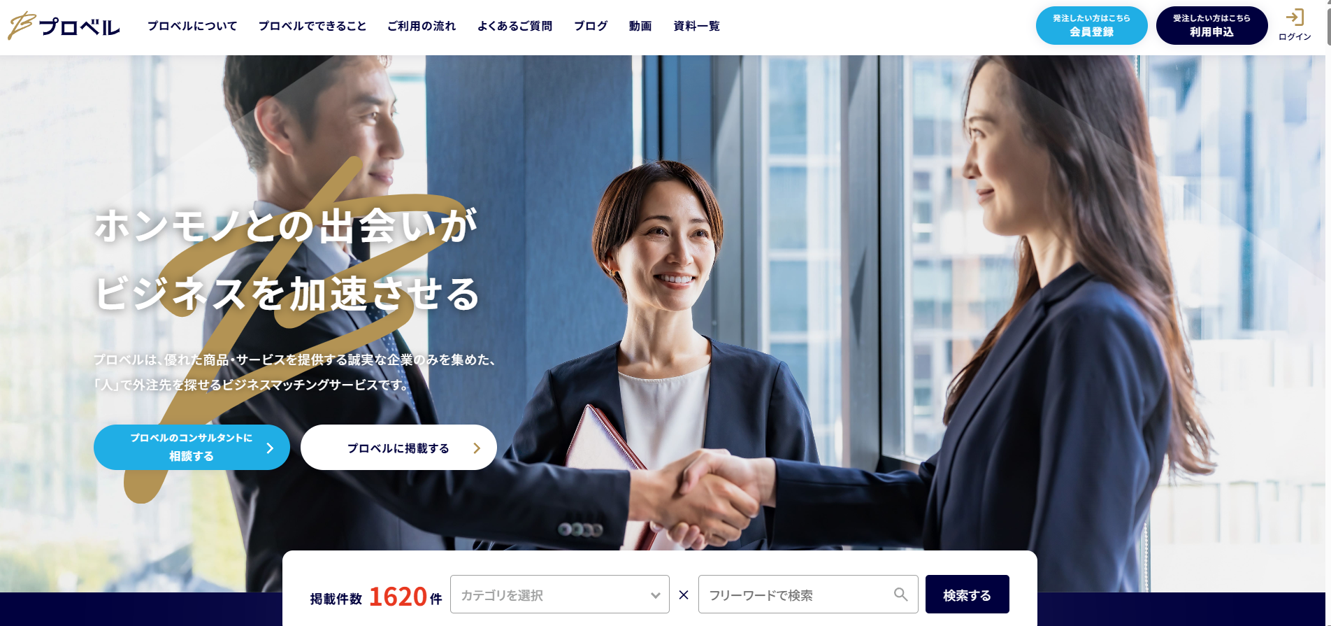 プロベルは、「一定以上のスキル」「第三者に確認済みの実績」「仕事やクライアントへの誠実さ」を持ち合わせた企業のプロフェッショナルのみが掲載できるマッチングプラットフォームです。