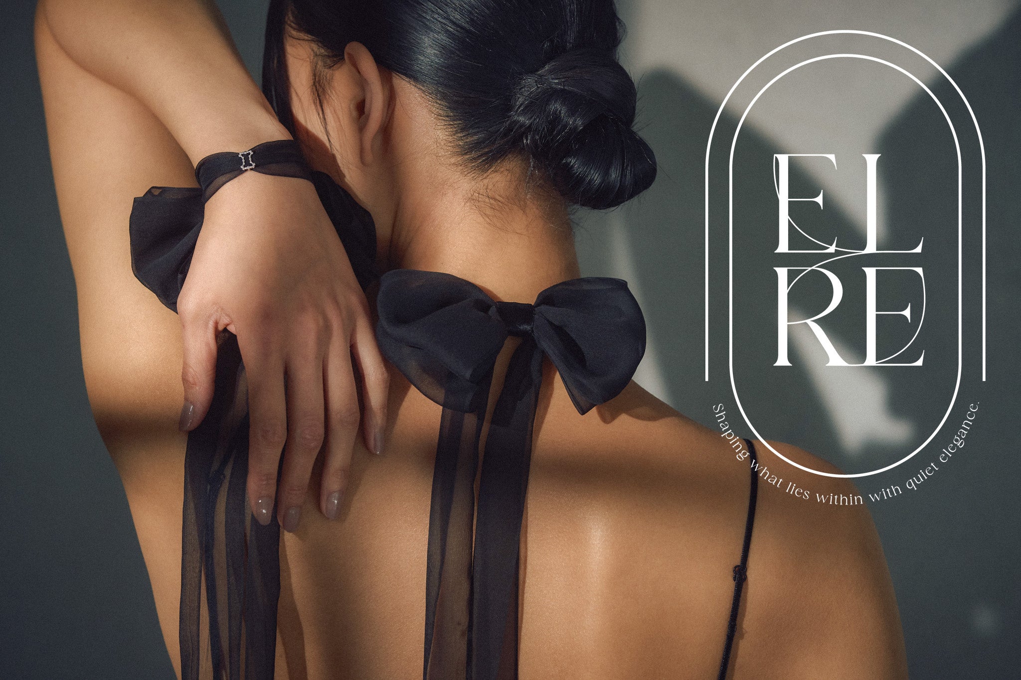 ピュアシルクのみで仕上げた上品なリボンは、まるで蝶が羽ばたく姿のように、後ろ姿に静かな余韻を残します。