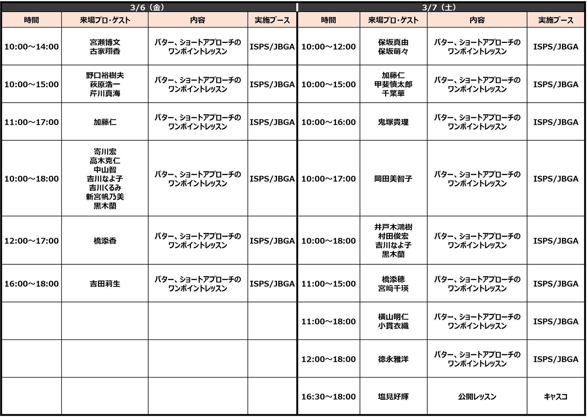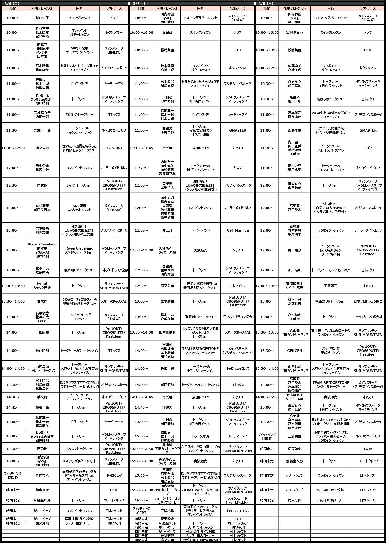 プロ来場ブース一覧:https://www.japangolffair.com/pdf/jgf2026_guestinfo_0216.pdf