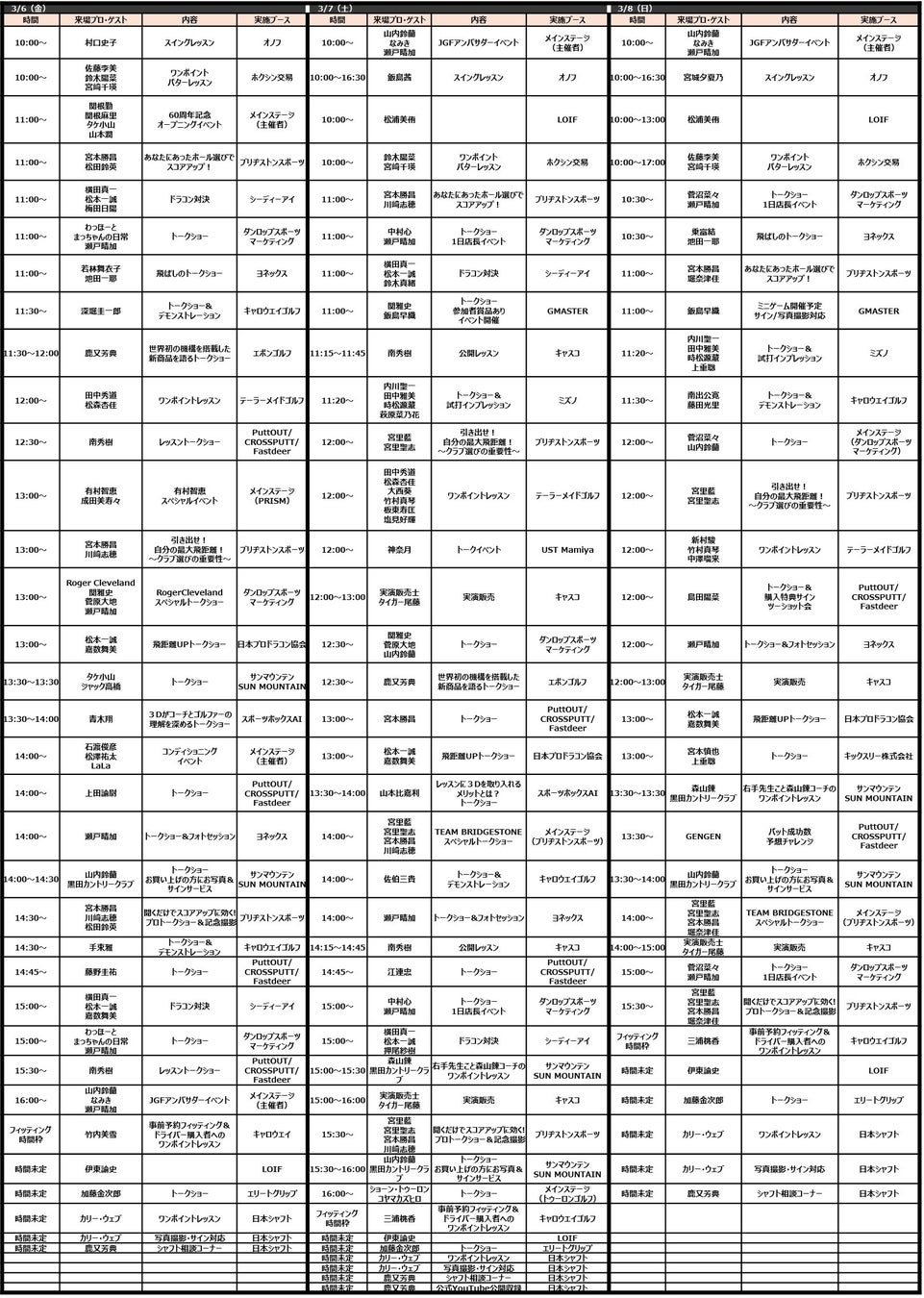 <3日目3/8(日) 注目イベント>