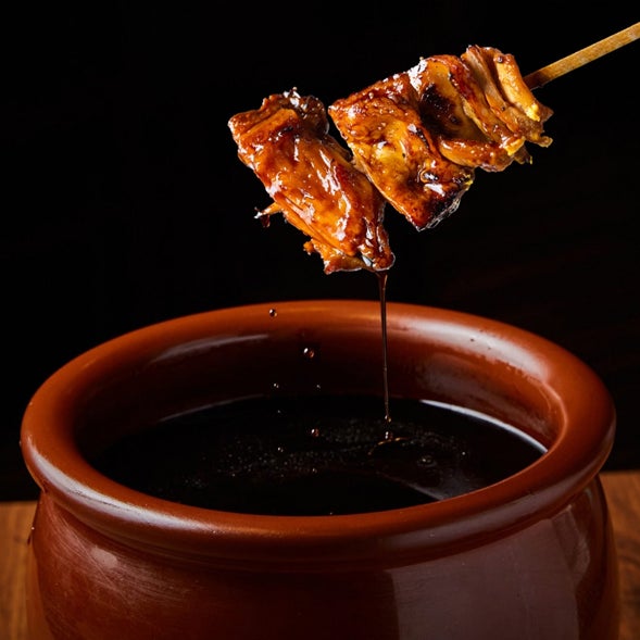 やきとん まこちゃんのタレは、創業以来“一子相伝”。毎日つぎ足し、つぎ足しで受け継ぎ、日々数百本焼き上げる肉の旨みが溶け込んでいきます。