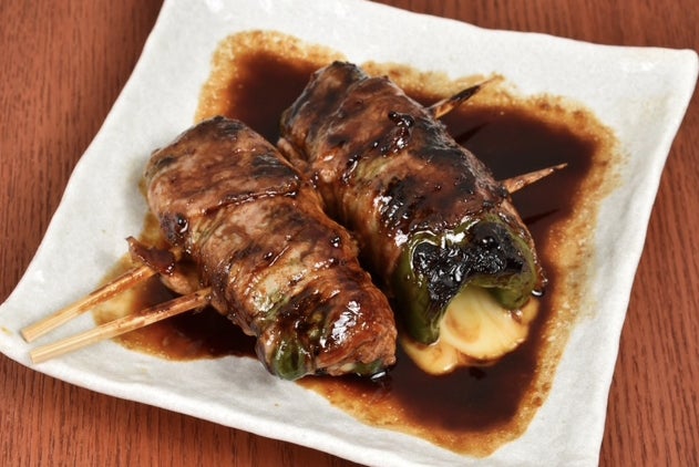 ぶたピーマンチーズ 1本 473円(税込) 新商品 カレー煮込み串 1本 242円(税込)