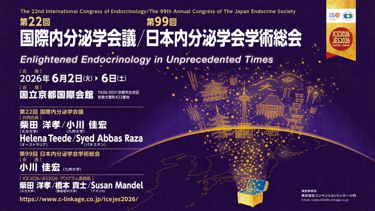 また同時期に、「第22回国際内分泌学会議(ICE2026)」および「第99回日本内分泌学会学術総会(JES2026)」を開催し、国内外の研究者・臨床医が一堂に会する国際的な学術交流の場を提供するとともに、市民公開講座の実施などを通じて、一般の方々にも内分泌学や健康に関する最新の知見をわかりやすく発信いたします。