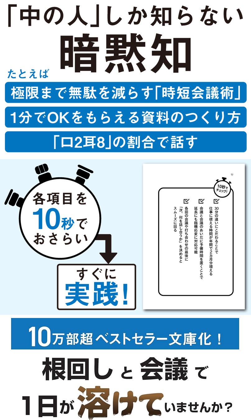 日本一の会社だけが実践している無駄を徹底的に排除した究極の時短術。議事録なんて作らない。メールする暇があればさっさと電話しろ。1分で読めてしまう資料作成術など、トヨタではコミュニケーションの最速化が行われており、他企業が社内コミュニケーションをトヨタ化するだけで2ヶ月分の労働時間を捻出可能。