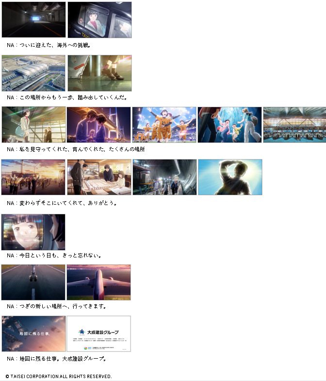 大成建設グループ新TVCM 「挑戦」篇が4月11日(土)に公開。東京国際空港、エディオンピースウイング広島、横浜ベイブリッジ、四国水族館など豪華アニメーション制作陣により描かれる「地図に残る仕事。」