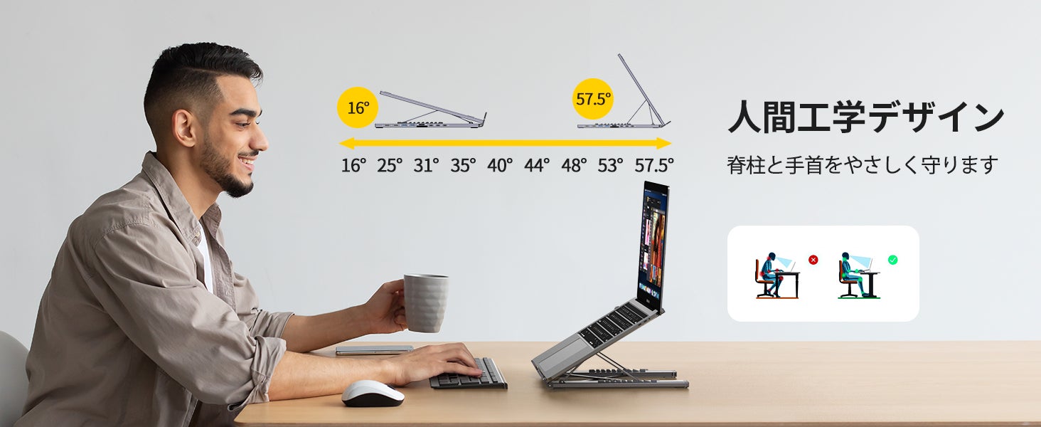 画面の高さを調整でき、長時間作業の負担軽減に配慮。