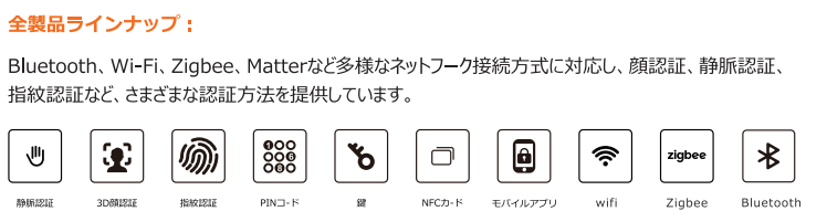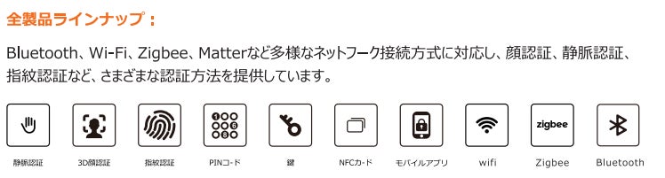 顔認証、指紋認証、パスコード、スマートフォンアプリなど複数の解錠手段に対応し、利便性と安全性の両立を図っています。