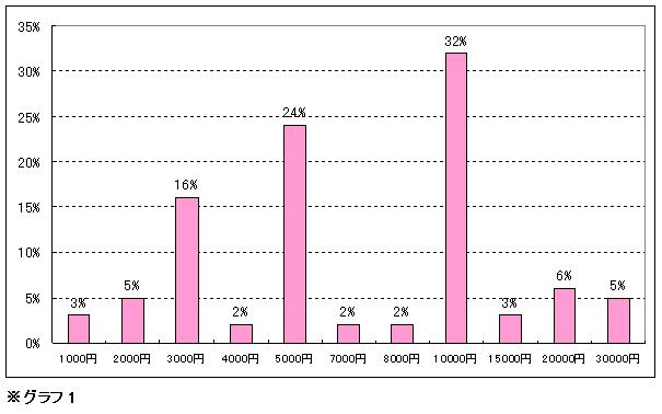 「1万円」が32%、「1.5万円」が3%、「2万円」が6%、「3万円」が5%という結果から、