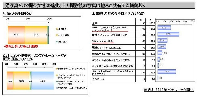 ●猫写真をよく撮る女性は4割超え!撮った写真はブログやメールで他人と共有する傾向。