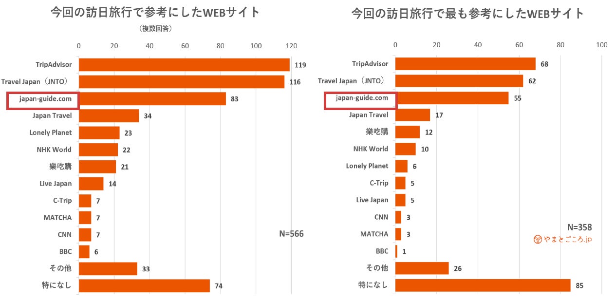 福井市では、北陸新幹線の延伸に向けた観光需要把握の一環として、日本に駐在する外交官を対象にして、令和4年度に「外交官向けインバウンド需要アンケート調査[1]」を実施しました。そのアンケート内で「日本国内での旅行先を、どの情報源から選び、決めていますか?」の設問に対して、Websiteと回答した人の最多数が、自由記載でjapan-guide.comを挙げました。福井市では、その結果を参考に、訪日外国人全体への影響力を考慮して、ジャパンガイドでのプロモーションを実施することを決定しました。