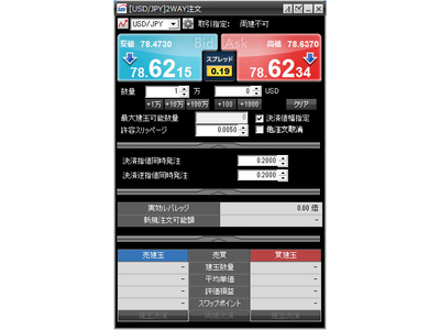 口座開設・維持費および取引手数料は無料です。本取引は元本及び利益が保証されるものではありません。本取引は、取引金額(約定代金)に対して少額の取引必要証拠金をもとに取引を行うため、取引必要証拠金に比べ多額の利益を得ることもありますが、その一方で短期間のうちに多額の損失を被る可能性があります。本取引は、通貨等の価格又は金融指標の数値の変動により損失が生ずるおそれがあり、かつその損失の額が預託した証拠金の額を上回ることがあります。法人のお客様のお取引には決済期限があり、毎週末最終営業日の取引終了時点(夏時間午前5:30、冬時間午前6:30)の15分前からお客様の保有建玉は順次強制的に決済されるため、意図せざる損失を被るおそれがあります。スワップポイントは金利情勢の変化等により変動しますので、将来にわたり保証されるものではありません。取引レートは2Way方式で買値と売値は同じでなく差があります。取引は1通貨単位からです。本取引にあたって必要な証拠金の額は取引通貨ごとに異なり、取引通貨レートに応じた取引額に対して一定の証拠金率(個人のお客様:4%(レバレッジ25倍)、法人のお客様:0.5%(レバレッジ200倍))の証拠金が必要となります。お取引を始めるに際しては、「契約締結前交付書面」等をよくお読みのうえ、取引内容や仕組み、リスク等を十分にご理解いただき、ご自身の判断にてお取引くださるようお願いいたします。