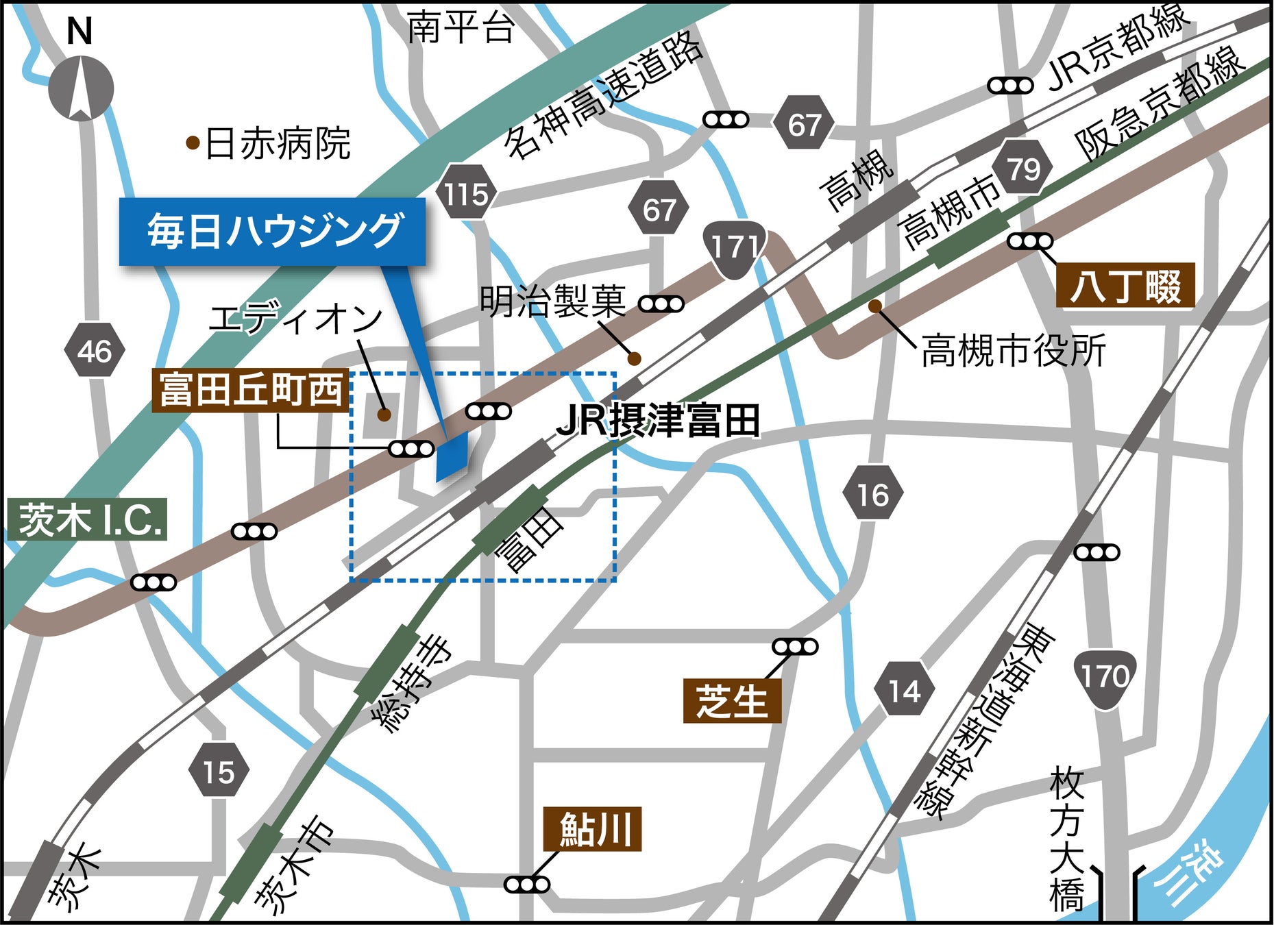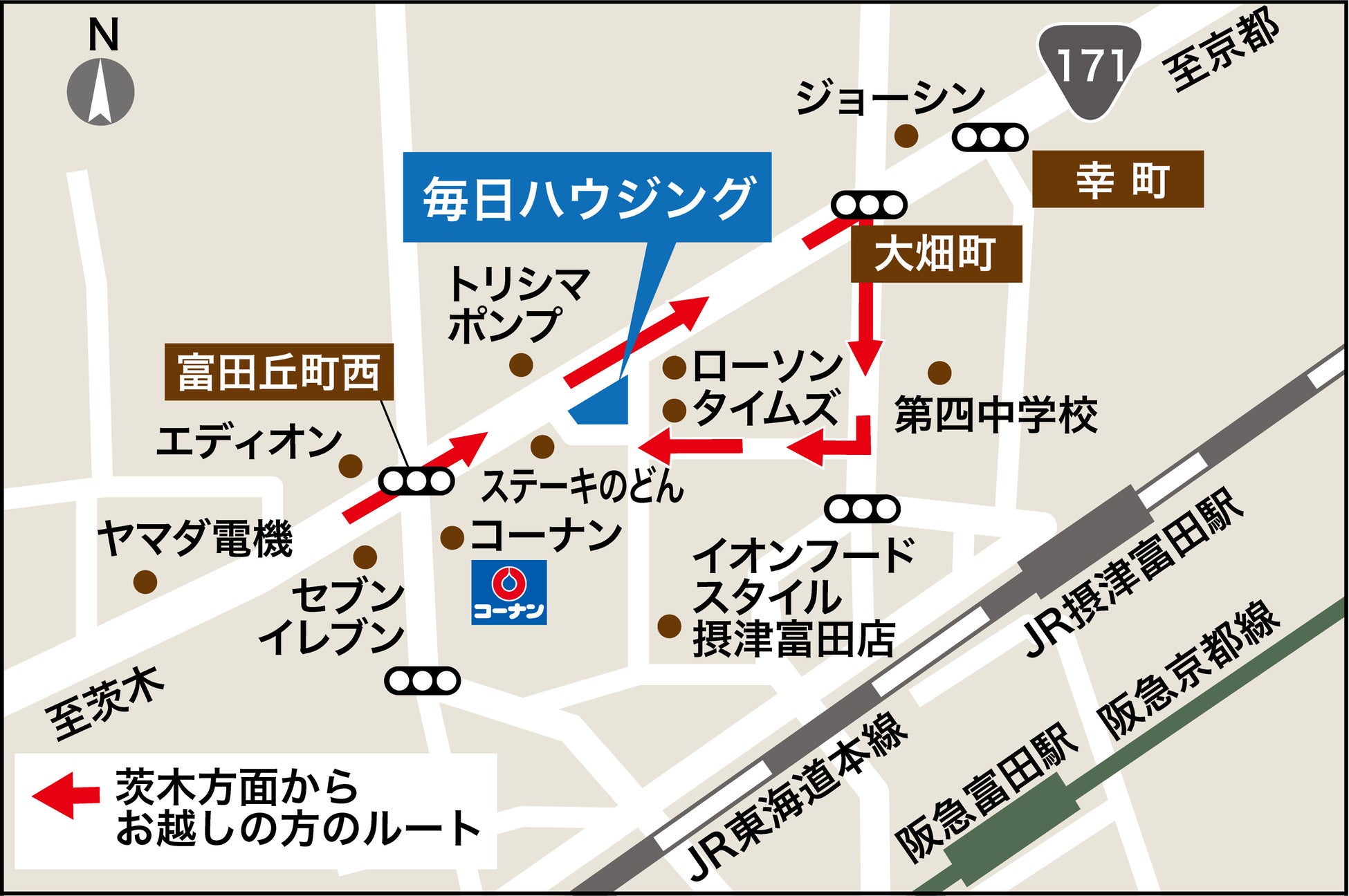・アクセス 国道171号線沿い、コーナン高槻富田丘店 北東すぐ