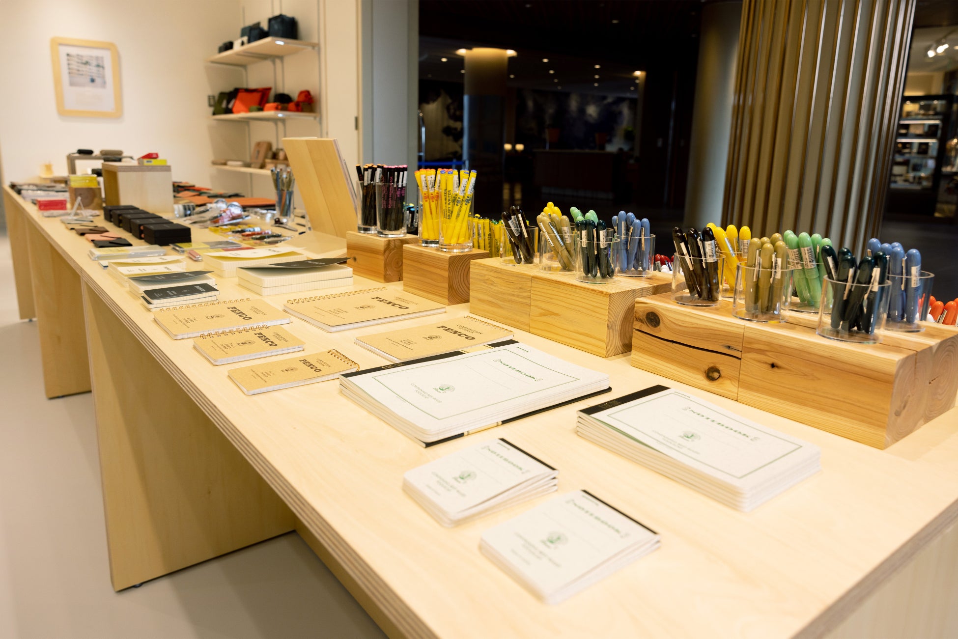 “旅”と“日本”をテーマに据えたコンセプトショップとなる当店では、ハイタイドのオリジナルブランド〈penco〉を始め、日本を代表する専門ブランドの高品質な筆記具やノートといった、海外からの旅行者にお勧めしたい文房具が種類豊富に揃います。