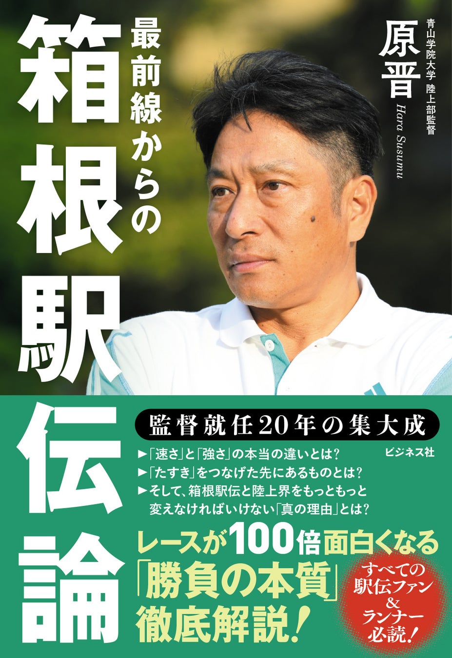 節目の監督就任20年目に、こちらの本を出版いたします。箱根駅伝の光と影、組織の闇、さらには箱根駅伝の未来について、原独自の目線で大きく語っています。他の人はズバリと自分の意見を言わず、ただやってきたことだけを述べるスポーツ選手が多い。また、立場のある人は当たり障りのないことしか言わない人がほとんど。一方、私は自分の箱根駅伝に対する想いを熱量を込めてこの本で述べております。スポーツを愛する人のみならず、ビジネスを行っている皆さんも、必ずや、生かされる本となっています。一度手に取ってご覧ください。