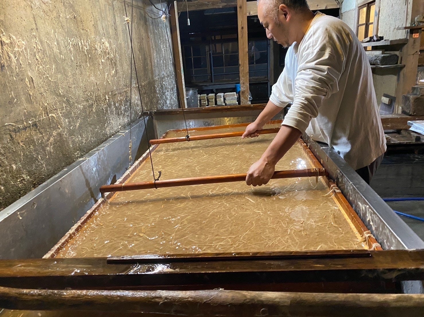 和紙は立山町で原料の楮(こうぞ)から栽培し、和紙製作を行う川原隆邦氏に協力いただき、和紙のあたたかさ、楮の原料をあえて個性的に見せる和紙など、品のあるオリジナル和紙を使用します。