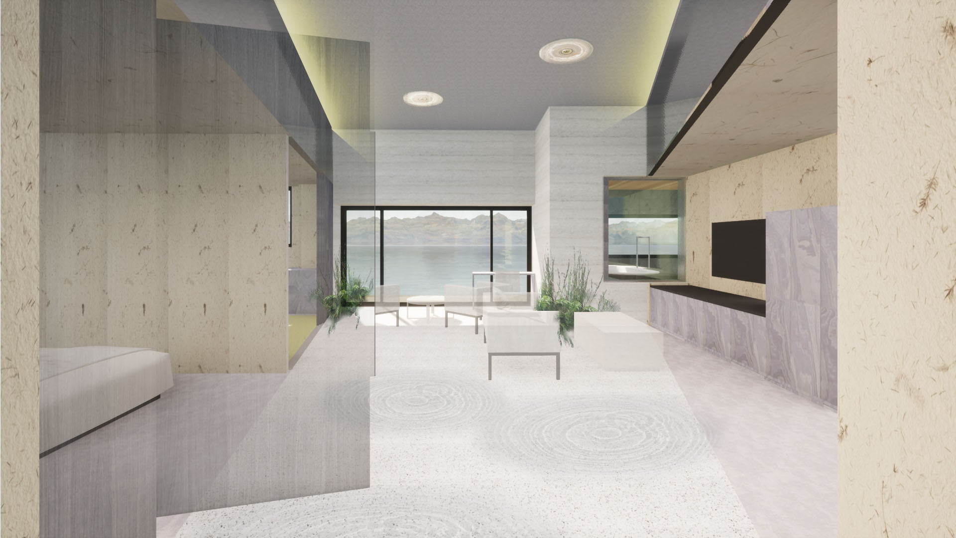 神通峡の自然を取り入れた素材、富山の土地に根差した素材、環境配慮型の新素材を所々に使用し、多様な視点でサステナビリティと出会える空間です。