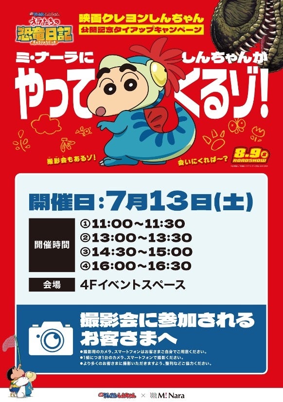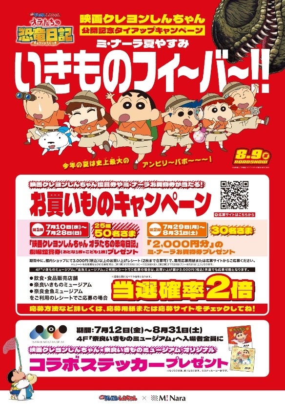 ミ・ナーラ×奈良いきものミュージアム×『映画クレヨンしんちゃん オラたちの恐竜日記』タイアップ企画 夏休みはミ・ナーラでしんちゃんに会いにこようキャンペーン