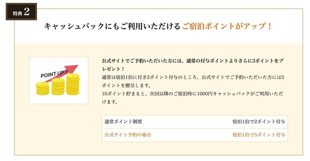 <特典2>キャッシュバックにも利用できるご宿泊ポイントがアップします。