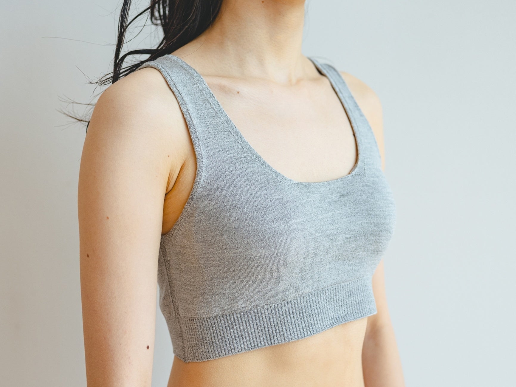 パッド部分の生地を二重にし、外側と同じようにシルク84%の生地がお肌にあたります。カップはひとつづきのピーナッツパッドを使用することで、ずれにくく、バストの形を美しく保ちます。パッドを取り外せば、より開放感のあるナイトブラとしても活用可能。リブ部分は特殊弾性糸を入れ、体にぴたっと馴染みます。締め付け感はないまま、身体にやさしくフィットします。