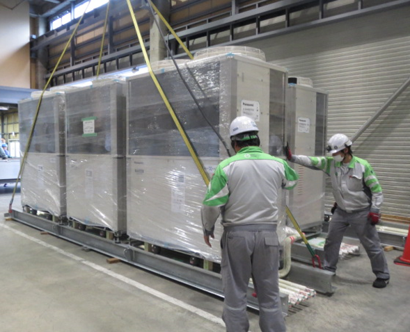 従来、空調機据付工事現場で行っていた作業を、あらかじめテクノロジス®幕張で実施後、