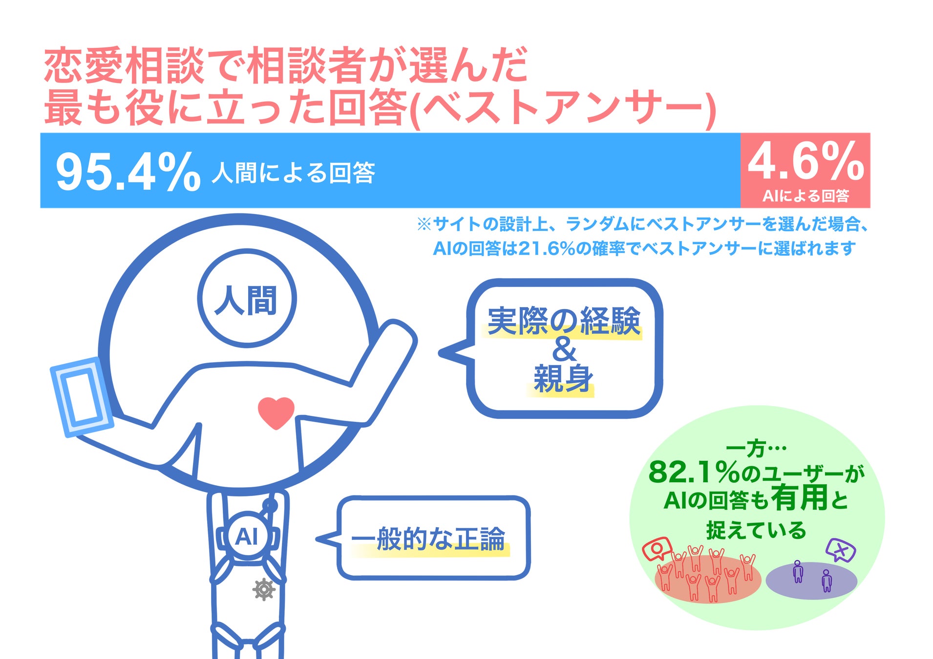 【AI vs 人間】恋愛相談でAIがベストアンサーに選ばれるのは5%未満!ユーザーは人間からのアドバイスを求める傾向