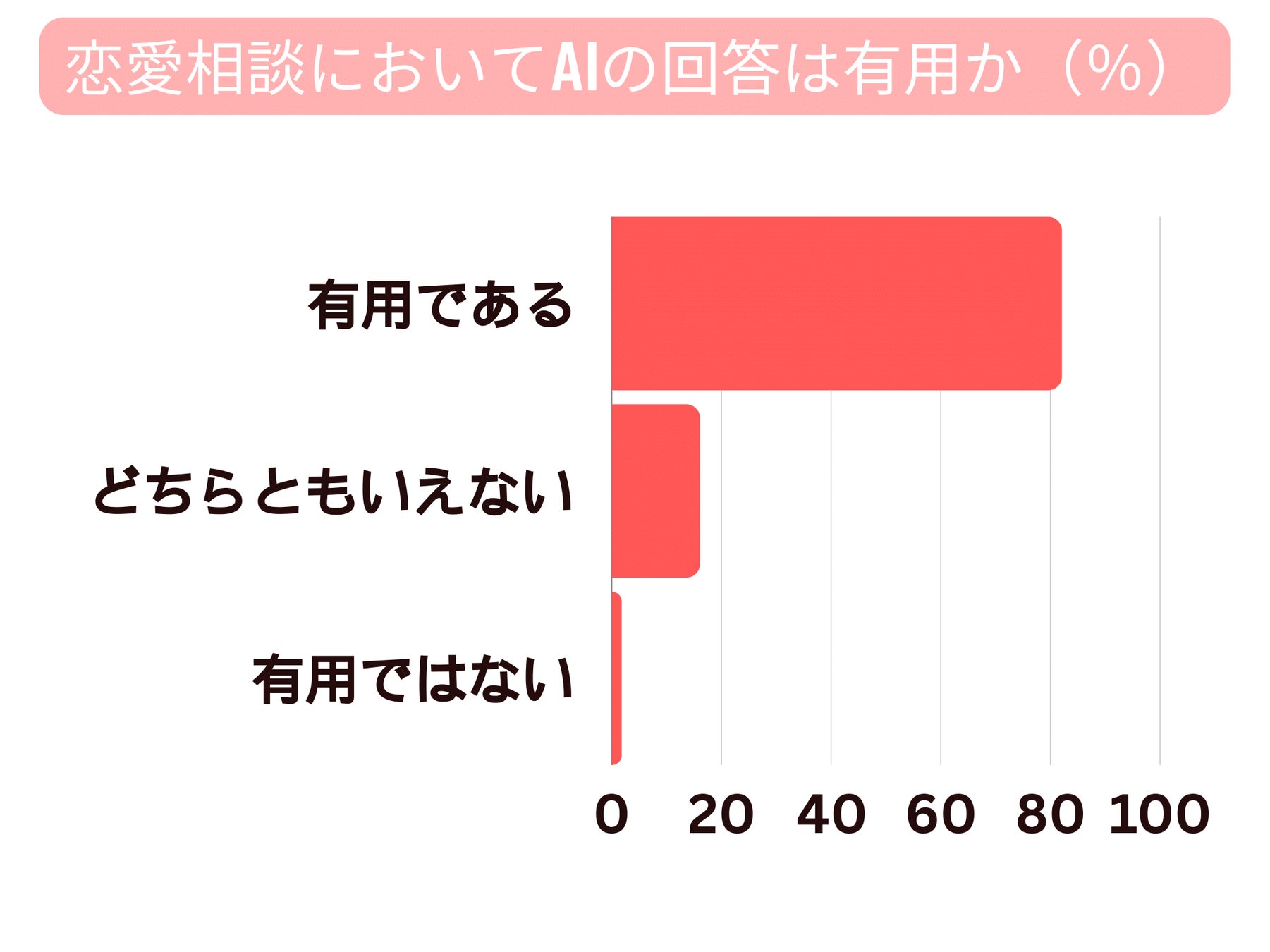一方、恋愛相談におけるAIの回答について82.1%のユーザーが有用と回答