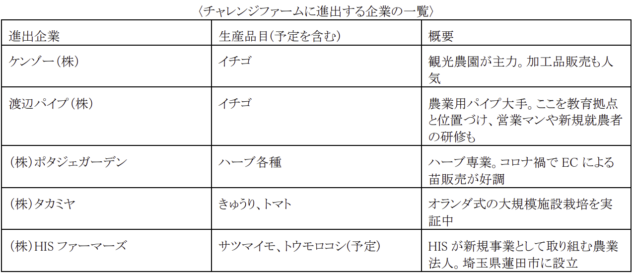 最初に進出したケンゾー株式会社(埼玉県羽生市、代表取締役:木村健造)はスーパーマーケットやレストランを経営する地元の有力企業で、イチゴの観光農園を軸にイチゴの加工販売などを手掛けています。