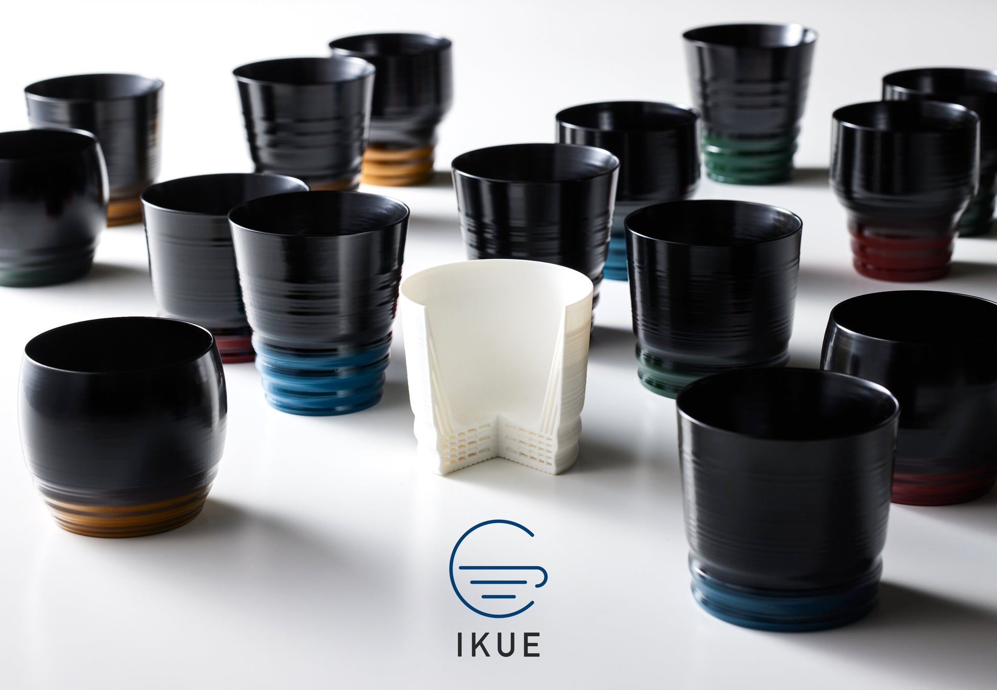 IKUEシリーズは、3Dプリンターによる造形後に山中塗職人による複数の工程を経て表面を漆で仕上げています。