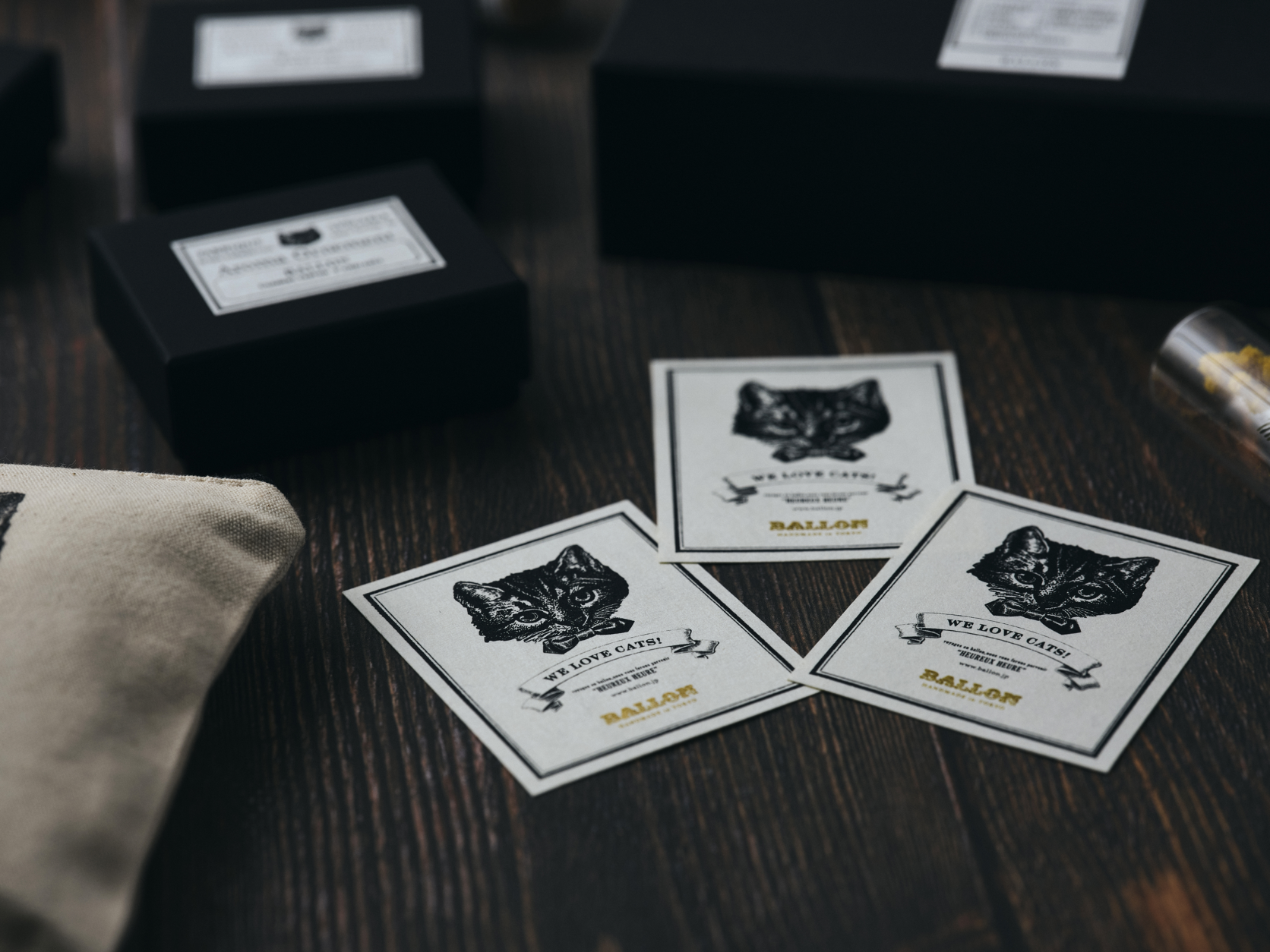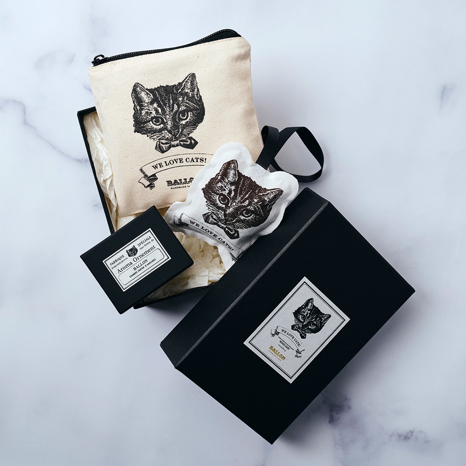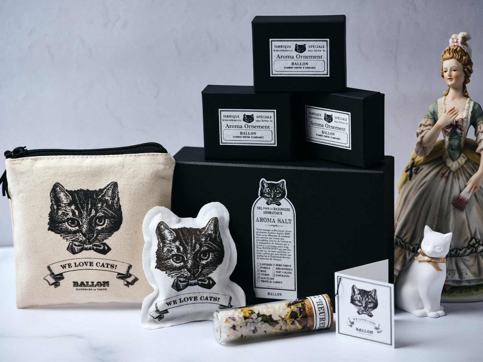 BALLONは従来より、スタッフの飼い猫をモデルにしたアロマオーナメントなど、猫を主役とした商品を多数発表しております。
