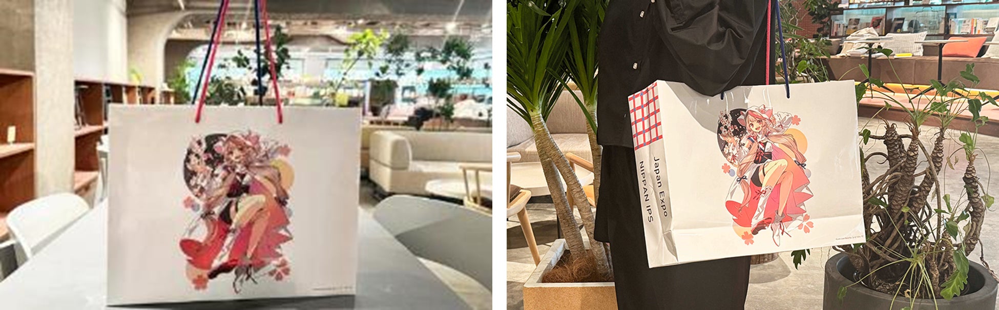 出展2年目となる本年はアイ・ピー・エスの”オリジナルショッパーバッグ”を作成しました。イラストは、「涼宮ハルヒ」シリーズや、アニメ化も決定した「天久鷹央の推理カルテ」シリーズの装画を務めている、いとうのいぢさんの描き下しです。開催地であるフランスのカラーを取り入れ、日本とフランスそれぞれのモチーフを生かし、”カワイイ”を表現していただいています。ショッパーバッグは開催期間中、アイ・ピー・エスのブース限定での取り扱いです。