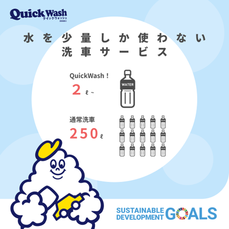 通常の洗車には、約250リットルの水が必要ですが、これだと駐車場を水浸しにしてしまいます。しかし、クイックウォッシュでは、わずか2リットルの水で洗車ができるため、駐車場をほとんど濡らすことなく、水資源を大切にする環境に優しいサステナブルな洗車サービスとして注目されています。