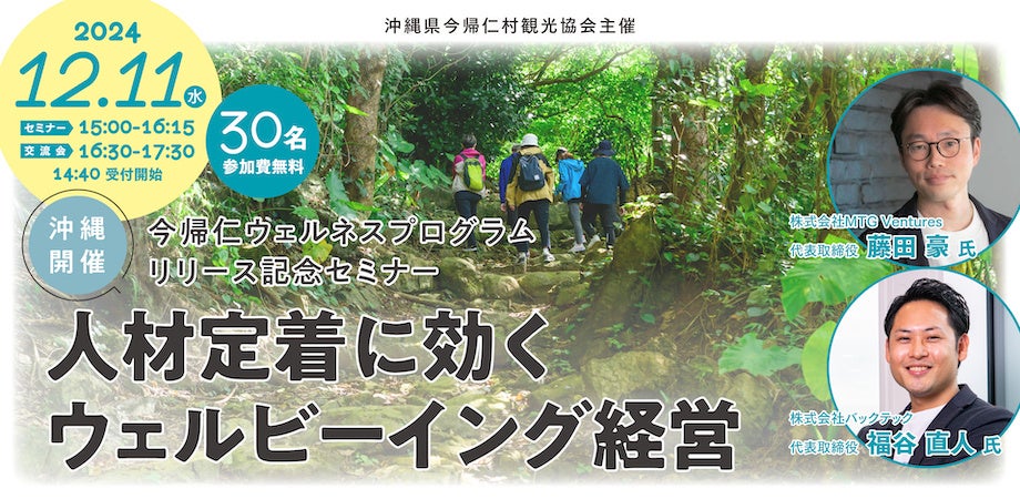 今帰仁ウェルネスプログラムの正式リリースを記念して、12月11日、那覇市内にてセミナー『人材定着に効くウェルビーイング経営』を開催します。