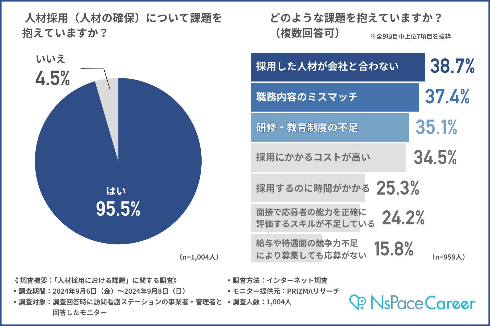 そこで今回、訪問看護特化の求人サイトを運営している在宅医療支援機構株式会社(https://www.hcso-inc.com/、以下当社)は、訪問看護ステーションの事業者・管理者を対象に「人材採用における課題」に関する調査を実施しました。