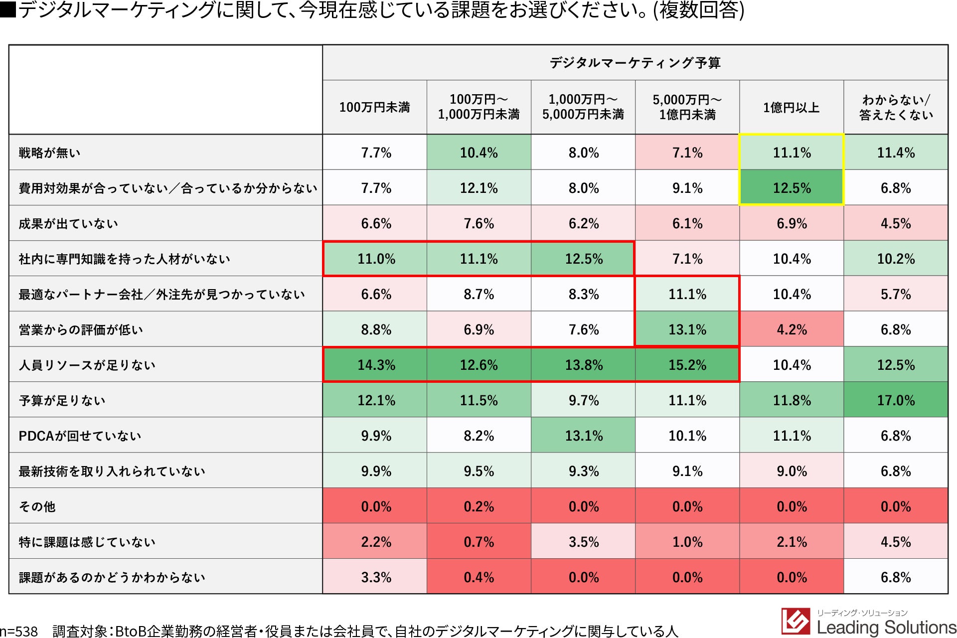 BtoB企業に特化したデジタルマーケティング支援サービスを提供する株式会社リーディング・ソリューション(本社:東京都千代田区、代表取締役:中田 義将)は、BtoB企業に勤務する経営者・役員、会社員の中でも、デジタルマーケティングに関与している538名を対象に、「BtoBデジタルマーケティング実態調査」を実施しました。