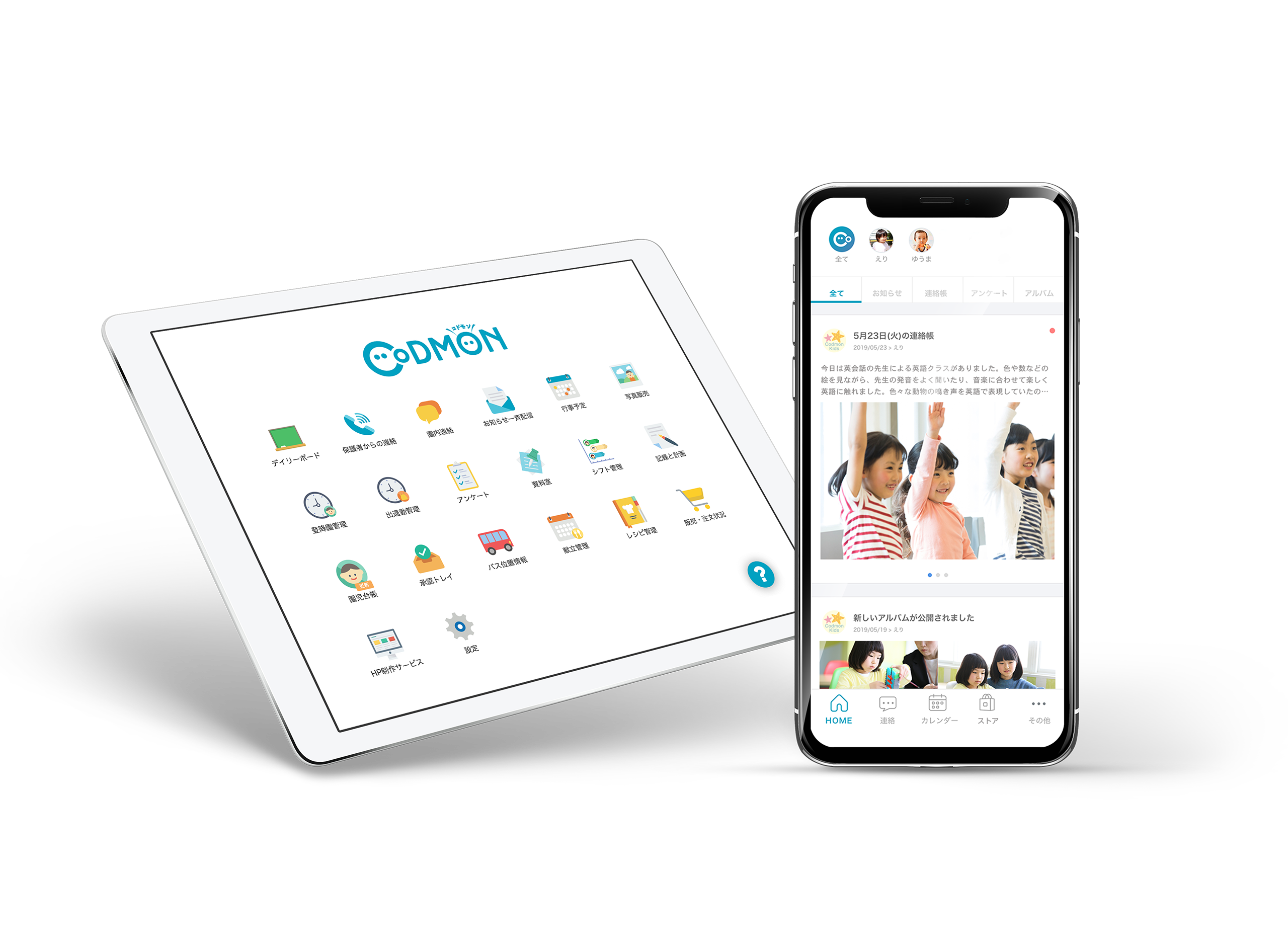 コドモンが運営する「コドモン」は保育・教育施設内で働く先生と保護者に対して各種支援するICTサービスです。園児情報と連動した成長記録や指導案などをスマートに記録する機能をはじめ、登降園管理や、保護者とのコミュニケーション機能など、先生の業務負担を大幅に省力化しながら、保育の質を高める環境づくりの支援をしています。全国47都道府県で1.6万を超える施設に導入されています(※2024年1月株式会社東京商工リサーチ調べ)。