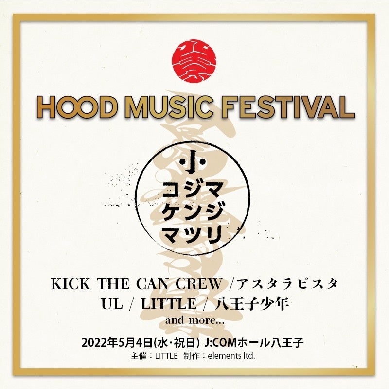 2022年5月4日(水・祝)、KICK THE CAN CREWのLITTLEがメジャーデビュー20周年を記念して、地元八王子J:COMホールにて、自身の本名を冠したイベント 『HOOD MUSIC FESTIVAL「コジマケンジマツリ」』を開催することを発表した。本フェスには、自身がリーダーを務めるKICK THE CAN CREWやアスタラビスタなど、関係の深いアーティストの出演が決定している。