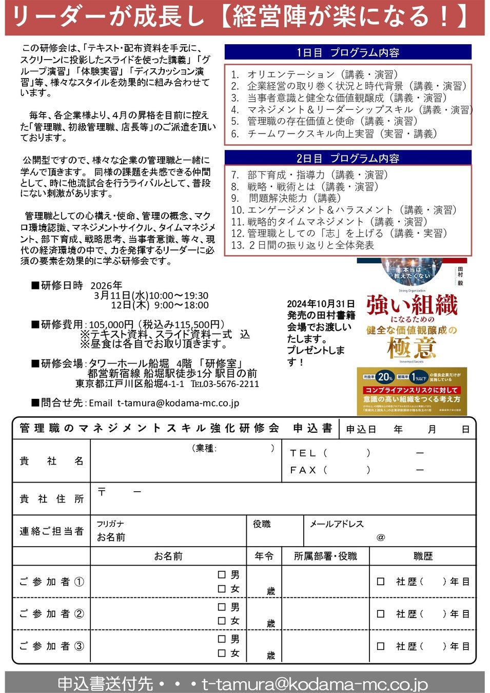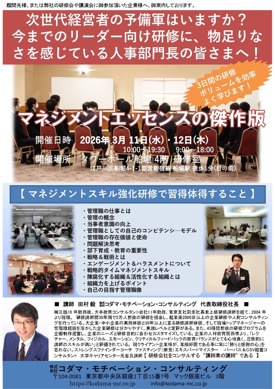 2026年3月11日(水)・12日(木)、現代のマネジメントの本質と実践知を凝縮した2日間の公開型セミナーを開催いたします。