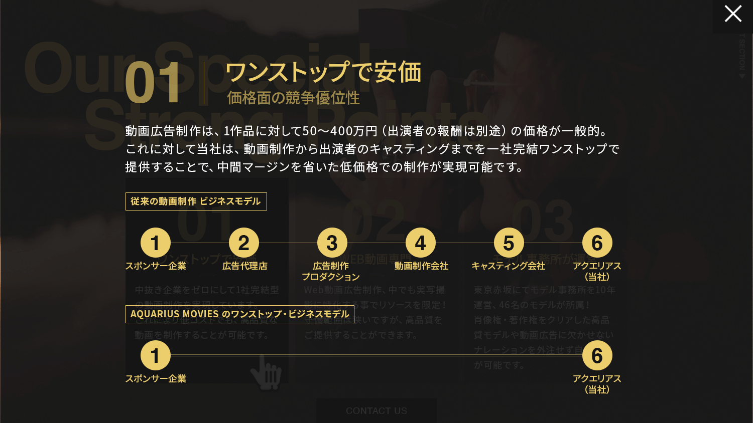 Web動画制作「アクエリアス ムービーズ」には、以下の3つの特徴があります。