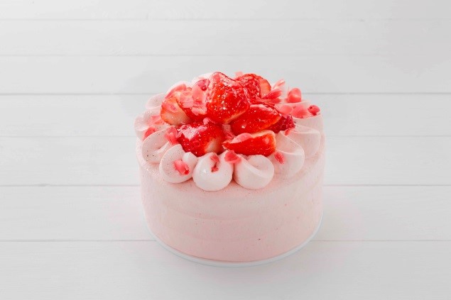 「サンキューマザー」は、カットされた真っ赤ないちごを綺麗に並べ、一輪のカーネーションをイメージした生ケーキです。いちご風味のクリームに包まれたピンク色が鮮やかなケーキの天面には、チョコレートを薄くカールするように削ったコポーを散りばめ、カーネーションの花びらに見立てました。箱を開けた瞬間に目を惹くキュートなデザインは、普段はなかなか言えない感謝の気持ちを伝えるのにもぴったり。しっとりしたスポンジと香りとコクのあるいちご風味のクリーム、そしていちごの酸味の相性が抜群のケーキです。