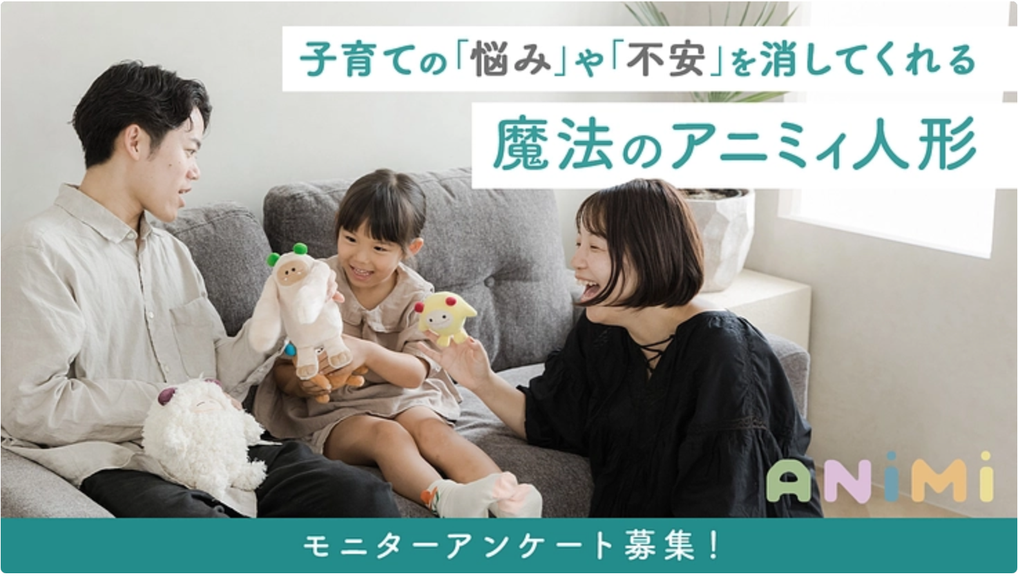子育てに悩んでいる、心疲れている、孤独を感じている、そんな人たちの心を軽くしてくれる「パペットカウンセリング」を広めたいと、開発された人形「ANiMi」。使用モニター募集を開始しました。